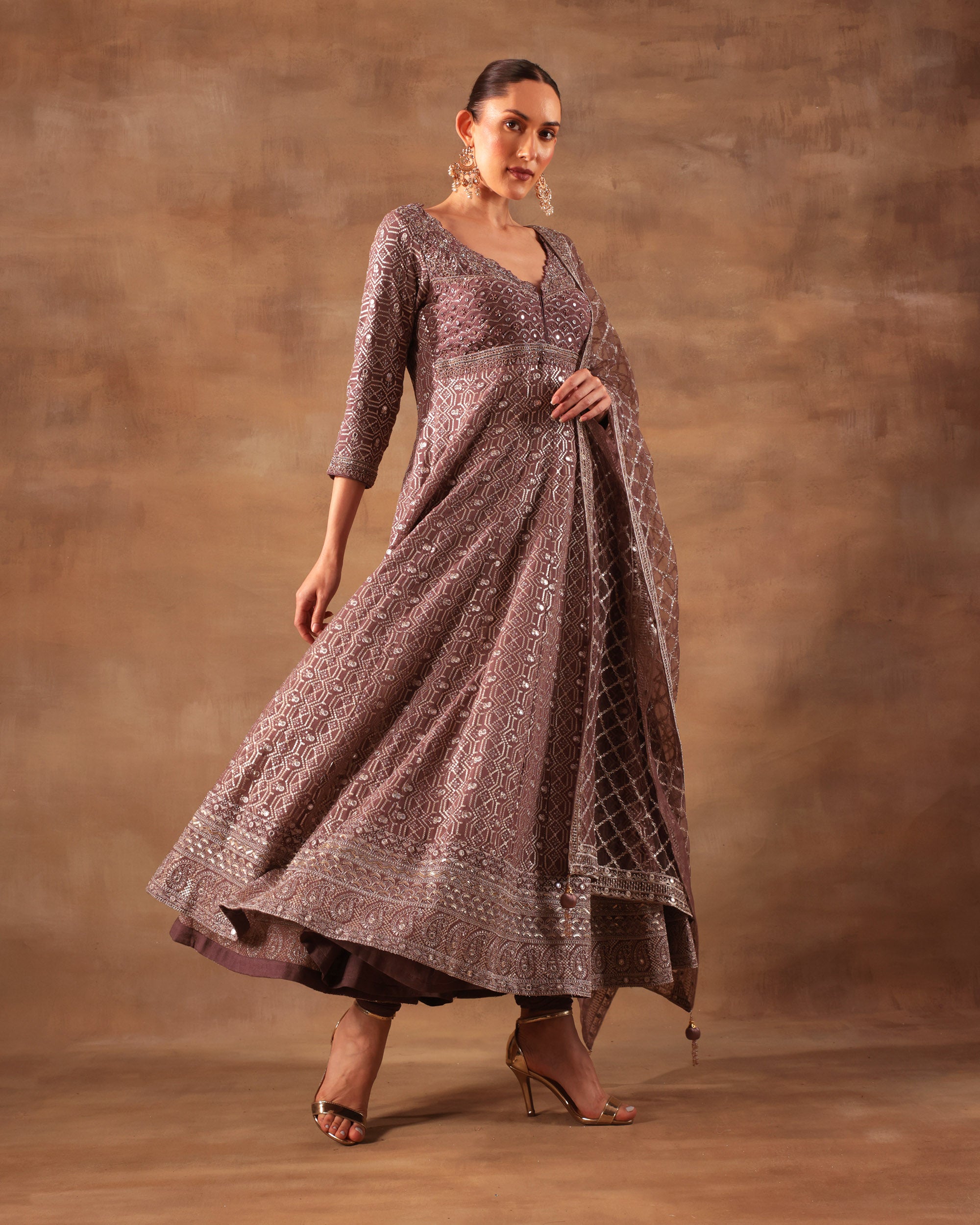 Graceful Anarkali suits blending tradition with modern flair, offering flowing silhouettes and detailed craftsmanship for refined festive and formal wear.